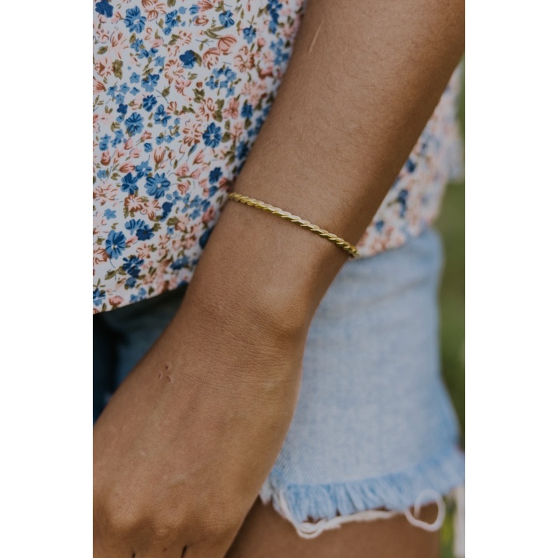 This twisted bracelet is intricate, minimal, + chic. It makes the perfect gift for two people who are about to intertwine their lives or it can resemble the ups and downs of how you got to wear you are today. We love to stack bracelets together for a totally unique look.